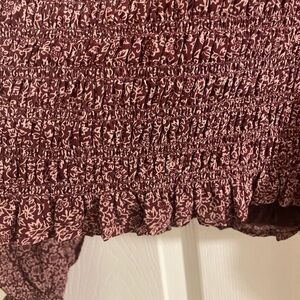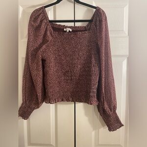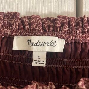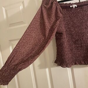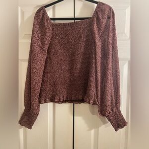 Madewell Floral Smocked cottage milkmaid Purple +white floral print top large