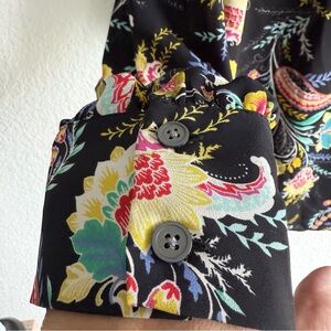 Loft Womens Shirt Blouse Black Floral Long Sleeve Button Neck Size Large
