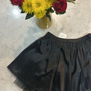 This mini skirt features delicate satin fabric and flowing tulle layers that create a playful, yet sophisticated look. Perfect for a special occasion.