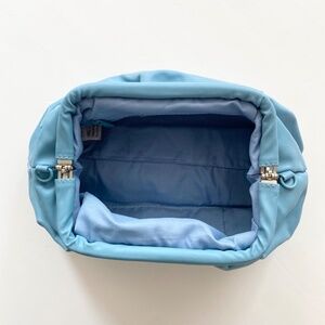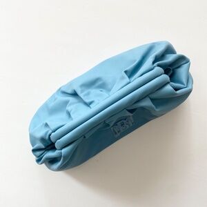 Logo clutch with hinge closure, ruched silhouette and chunky style detachable chain