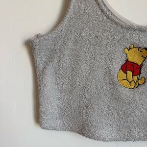 Disney Winnie The Pooh Embroidered Y2K Off White French Terry Crop Tank Top XL