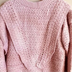 SOLD FARM Rio Pink Flower Texture Knit Cardigan Sweater Button Ruffle Size L