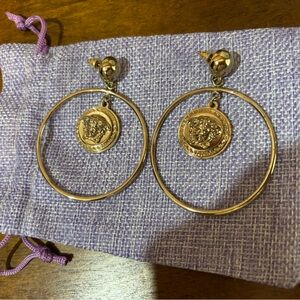Versace authentic gold tone, Medusa hoop pierced earrings
