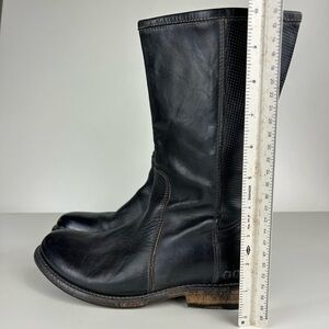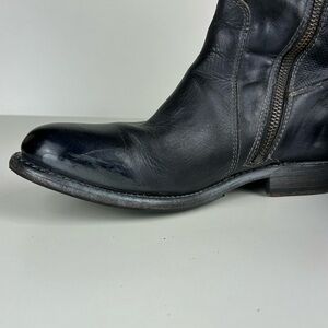 Women’s Size 7 Bed Stu Annette Cobbler Series Metallic Black Chrome with a silver sheen. Mid calf boots. Distress look. Features full grain leather, almond toe. Side zipper. Stretch panels for comfortable fit on calf. Great condition