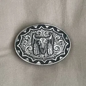 NWOT: Solid Silver Western Belt Buckle with Bull Skull Design