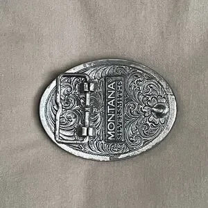 Brand new sterling silver belt buckle featuring an intricate bull skull and floral design. Perfect for adding a Western touch to any outfit. Hand made in Montana!