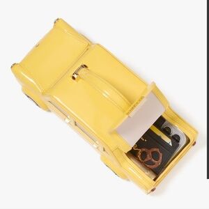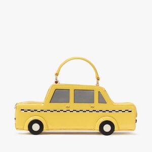 Charming taxi-shaped bag. Vivid yellow with black and white accents. Playful and chic.