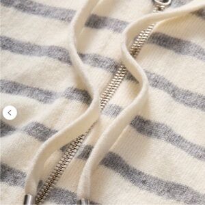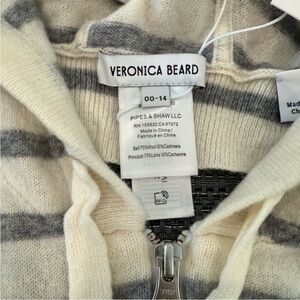 NWOT$298 Veronica Beard Cashmere cream,gray striped Hoodie Dickey jacket insert