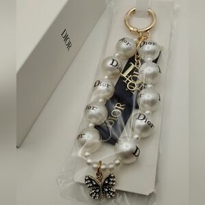 Dior Pearl and Gold Keychain with Butterfly&Dior On Pearls Charm BNIB
