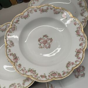 (4) Antique Haviland Limoges Rose & Vine Shallow Serving Bowl 9 "