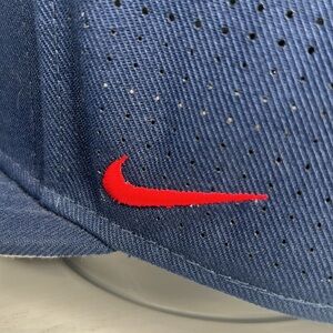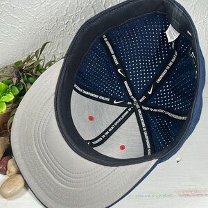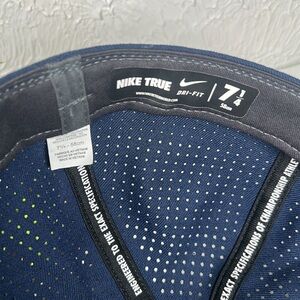 Ole Miss University of Mississippi Nike True Dri-Fit Hat. Fitted size 7 1/4 -58cm. Large Block embroidered M logo on front with vivid red color accented in white. Solid navy blue color with accent stitching & panels with top red button Nike log embroidered on side & old miss embroidered on the back. Front of hat and bill are solid & back portion is a vented material to provide comfort & coolness. Excellent condition NWOT Great hat for everyday wear as a gift or to show support for your favorite school/team