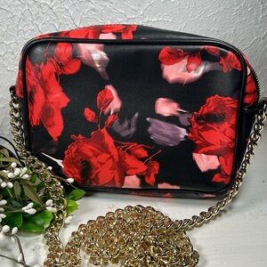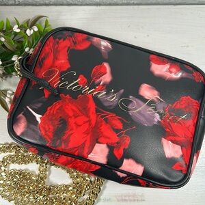 Victoria Secret 2019 Holiday Edition Crossbody Chain Strap Bag. Gorgeous weighted gold tone chain holds bag nicely on shoulder or crossbody. Vivid rose floral pattern adds a great punch of color to any outfit. Black interior has slip pocket inside & roomy center to hold all your essentials! Tassel pull accents the easy glide zipper top opening. 100% pvc Vegan Friendly! Victoria Secret script logo on front details the floral design. Great crossbody for everyday or any occasion!!