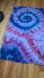 Vibrant tie-dye quilt with a spiral design. Features shades of blue and pink. Handmade quilted Tye dye throw blanket dyed and sewn by jrsdesignsltd featuring a striped back with dark blue, cranberry and pink Tye dye front and quilting that enhances the Tye dye pattern. Front is cotton material and back is remnant fabric. Made in Maine with ❤️ Free hand machine stitching no pattern used.