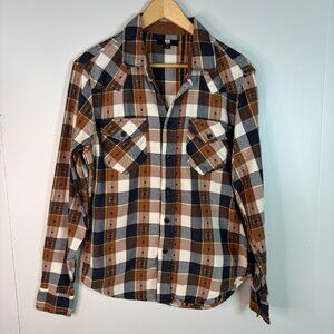 Frye Flannel Shirt Small Brown Plaid Long Sleeve Button-Up Cotton Men's