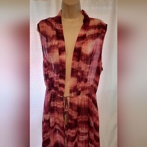 LuLaRoe Red and Pink Wrap Tunic with Mandarin Collar