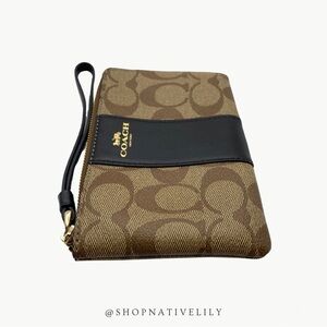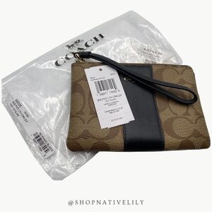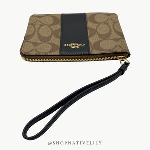 Coach Corner Zip Logo Wristlet In Signature Canvas With Stripe | Khaki/Black