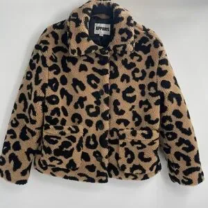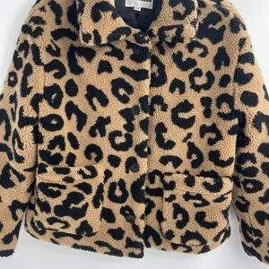 APPARIS anthropologie Animal Print Leopard cheetah Faux Fleece Teddy Jacket xs