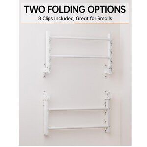 Saclsocs 32in Wall Mounted Drying Rack, Indoor Foldable, 2 Rods, 8 Clips, Holds 60+ lbs, Mounts on Plaster, Brick, Concrete and More, Pearl White