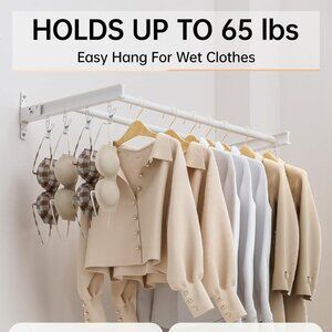 Superior Load Capacity: Compared to other wall-mounted racks on the market, ours is made with thickened and reinforced aluminum alloy, offering a load capacity of over 60 pounds, allowing you to easily air dry damp clothes.