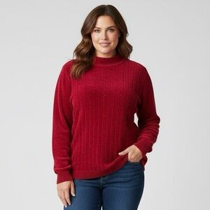 Alfred Dunner Mockneck Red Sweater Chenille Cabled Winter Holiday Christmas 3X