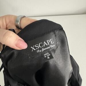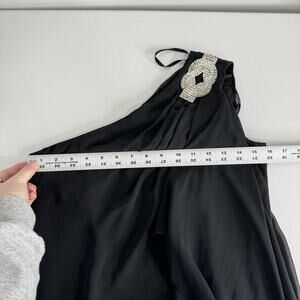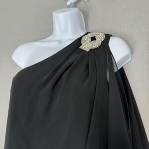 XSCAPE Dress Womens 4 Black One Shoulder Rhinestone Sash Gown Evening Formal