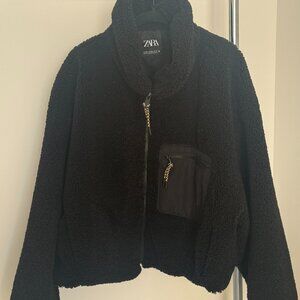 Zara Black Sherpa Fleece Jacket (Size XXL)