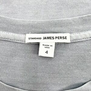 Keywords: James Perse, Gray T Shirt, Combed Cotton, Crew Neck, Short Sleeve, Women's Top, Casual Wear, Basic Tee, Made in USA, Size 4, Comfortable, Versatile, Everyday Essential