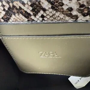Stylish Zara crossbody bag with a snakeskin pattern. Features a sleek design and versatile look.