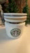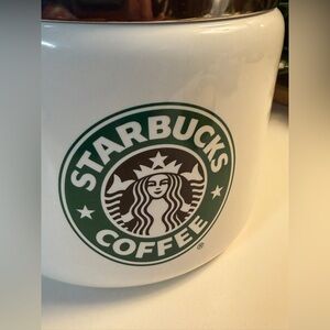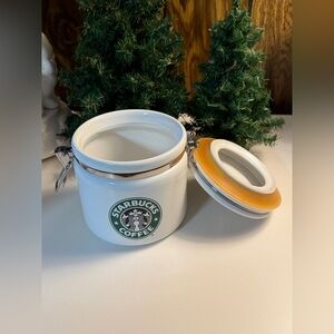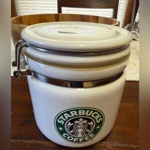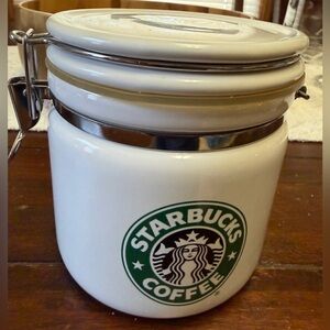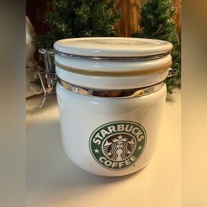 Elegant white jar with Starbucks logo. Ideal for coffee storage.