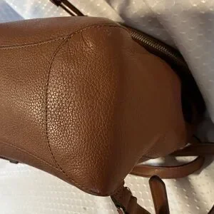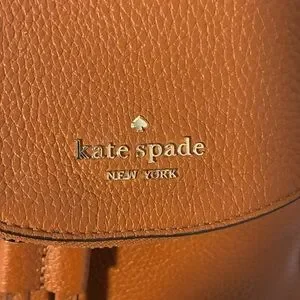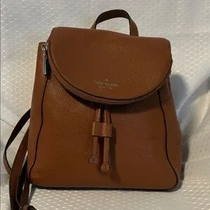 This Kate Spade Leila backpack in Warm Brown Gingerbread is in great condition. Features a zipped compartment in the front flap, magnetic snap closure and leather drawstring, adjustable straps in back. Roomy inside with slip pocket and zipped compartment. Great value for the price! See all photos-strap shows some wear where it meets the top of the purse—priced accordingly.