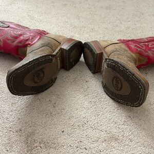 Stylish Double H boots with a bold red upper and classic brown leather foot. Perfect for a rugged look.