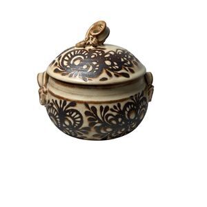 Hamilton Vtg 1989 Glazed Pottery Botanical brown & tan Motif
