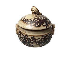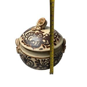 Hamilton Vtg 1989 Glazed Pottery brown & tan Botanical Motif #M-1846