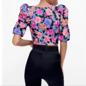 NWOT - Zara Floral Print Puff Sleeve Crop Top Sweetheart Neckline - Size S