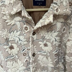 Abercrombie & Fitch Men’s Cream Floral Sherpa Zip Trucker Jacket - M