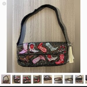 NWT Beaded Western Boots Shoulder Bag - Cowgirl Rodeo Festival Clutch
