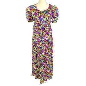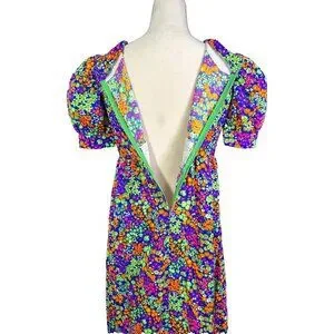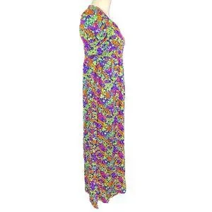 Up for sale is a 1960s/1970s handmade OOAK neon floral psychedelic day-glo maxi dress is a unique and vibrant piece of women's clothing. The dress features a colorful floral pattern with short sleeves, making it perfect for travel, parties, or casual outings. Made of cotton, this long dress is both stylish and comfortable, showcasing a maxi length and a regular size fit. With its retro design and handmade quality, this dress is sure to make a statement and stand out from any wardrobe. Due to the nature of