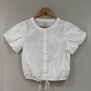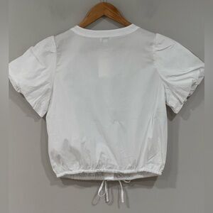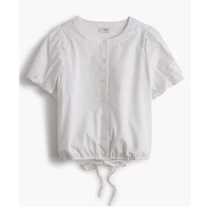 J. Crew White Short Puff Sleeve Button Down Tie Waist Top XS NWT