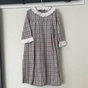 Charming plaid kids dress featuring a stylish ruffled collar. Perfect for any occasion, this dress combines comfort and style effortlessly.