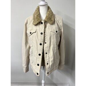 Vtg GAP Women’s Large Ivory Insulated Sherpa Lined Trucker Velour Y2K Jacket