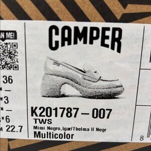 Chic Camper loafers with a striking black, brown, and blue color scheme. Elevate your style with these comfortable platforms. New! Never worn.