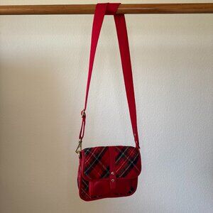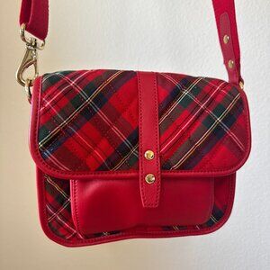 Talbots Red Tartan Plaid Wool Crossbody Bag Leather Flap Holiday Classic