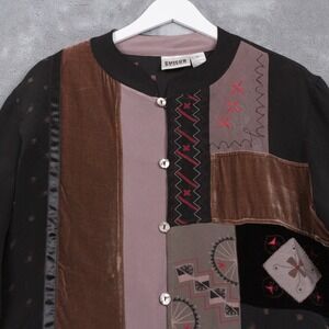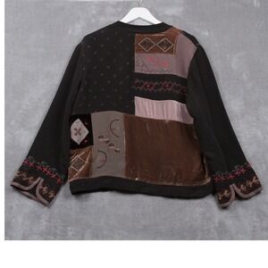 CHICOS DESIGN Patchwork Silk Velvet Embroidered Jacket Art To Wear Boho Sz 2/L