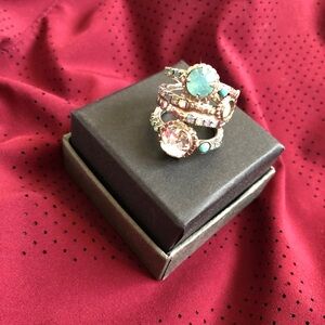 Experience the allure of Sorrelli's exquisite ring collection, where shimmering silver meets vibrant blue stones. Each piece is crafted with precision, showcasing a blend of classic elegance and contemporary style. The rings' captivating colors and intricate designs make them a standout addition to any jewelry collection.