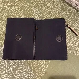 The word "tragen" means "to carry" in German, and this tri-fold cover lives up to its namesake. Made of nylon fabric with leather accents, it features a large zipper pocket that allows you bring your pens and other stationery accessories with your planner. When not in use, the cover stays closed with magnets.
