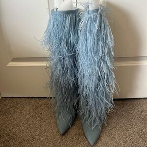 Steve Madden Light Blue Feathered Heeled Boots