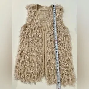 Altar’d State 70’s Style Yarn Vest Boho Cowgirl Shaggy Beige Cream Medium