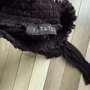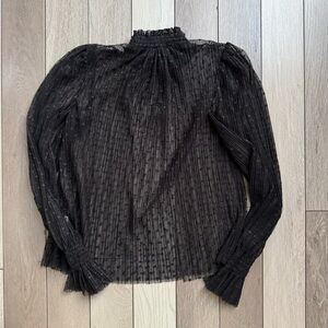 STATE Black Blouse with Puff Sleeves and Ruffled Mandarin Collar