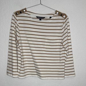 New VERONICA BEARD Hovey Striped Top Small Khaki / Off White Cotton