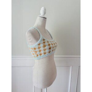 Avantlook Houndstooth Mohair Crop Top M Aqua Orange